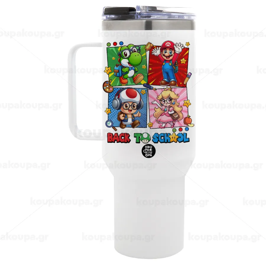 Back to the School Mario & Friends, Mega Stainless steel Tumbler with lid, double wall 1,2L