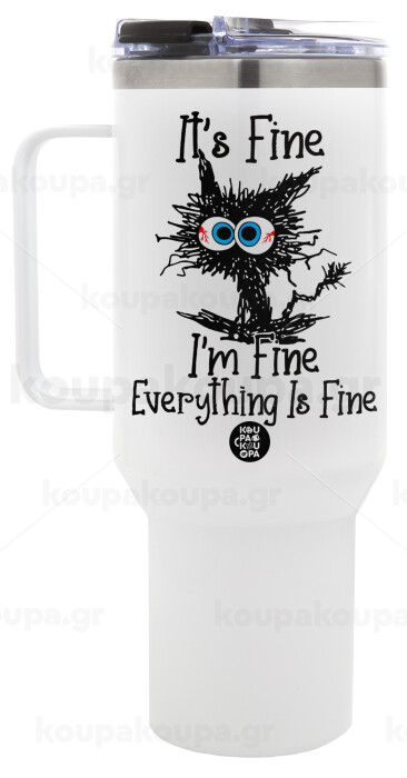 Cat, It's Fine I'm Fine Everything Is Fine, Mega Stainless steel Tumbler with lid, double wall 1,2L