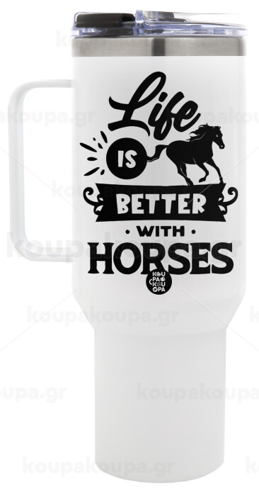 Life is Better with a Horses, Mega Stainless steel Tumbler with lid, double wall 1,2L