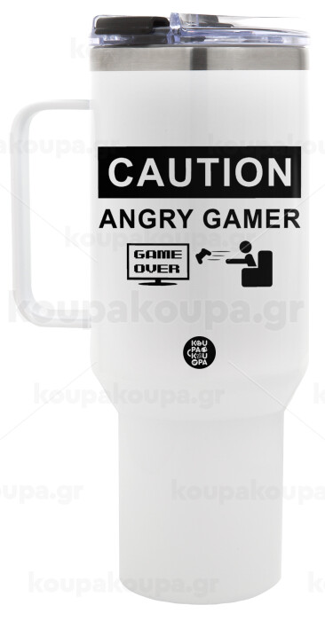 Caution, angry gamer!, Mega Stainless steel Tumbler with lid, double wall 1,2L