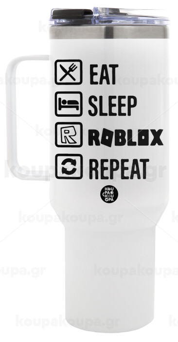 Eat, Sleep, Roblox, Repeat, Mega Stainless steel Tumbler with lid, double wall 1,2L