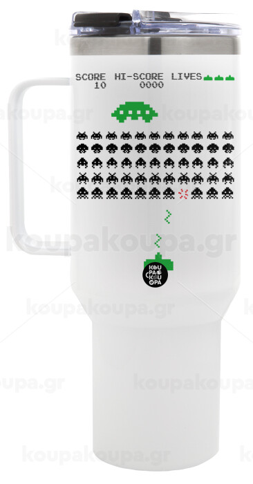 Space invaders, Mega Stainless steel Tumbler with lid, double wall 1,2L