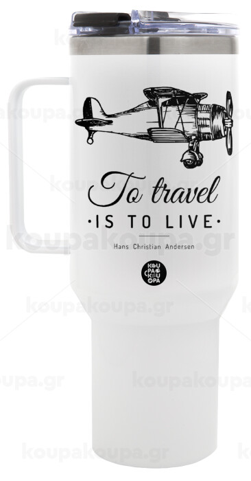 To travel is to live, Mega Stainless steel Tumbler with lid, double wall 1,2L