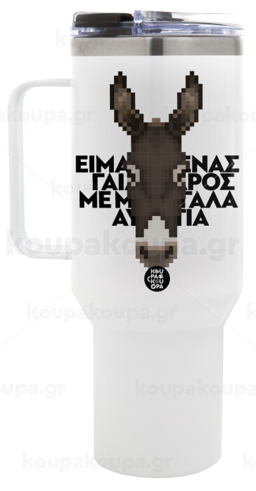 Είμαι ένας γάιδαρος με μεγάλα αυτιά., Mega Stainless steel Tumbler with lid, double wall 1,2L