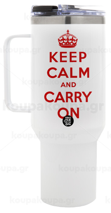 KEEP CALM  and carry on, Mega Stainless steel Tumbler with lid, double wall 1,2L
