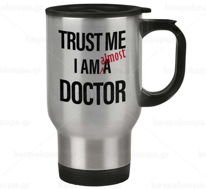 Trust me, i am (almost) Doctor, Stainless steel travel mug with lid, double wall 450ml
