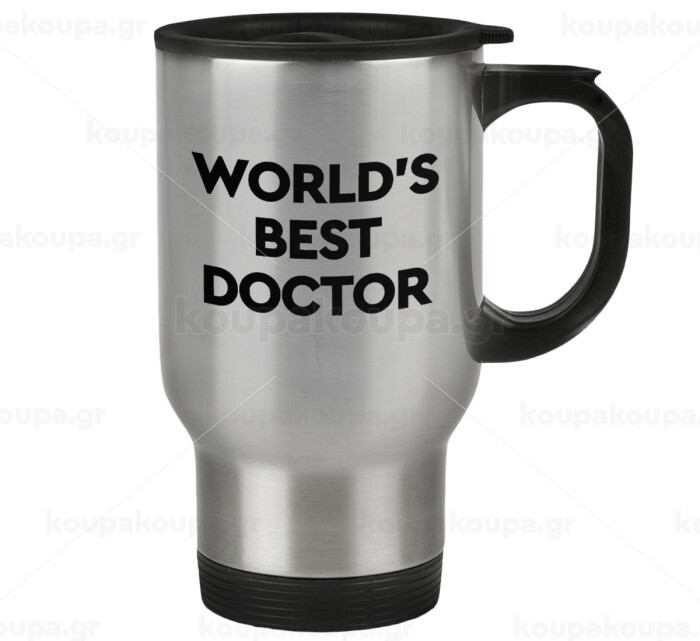 World's Best Doctor, Stainless steel travel mug with lid, double wall 450ml