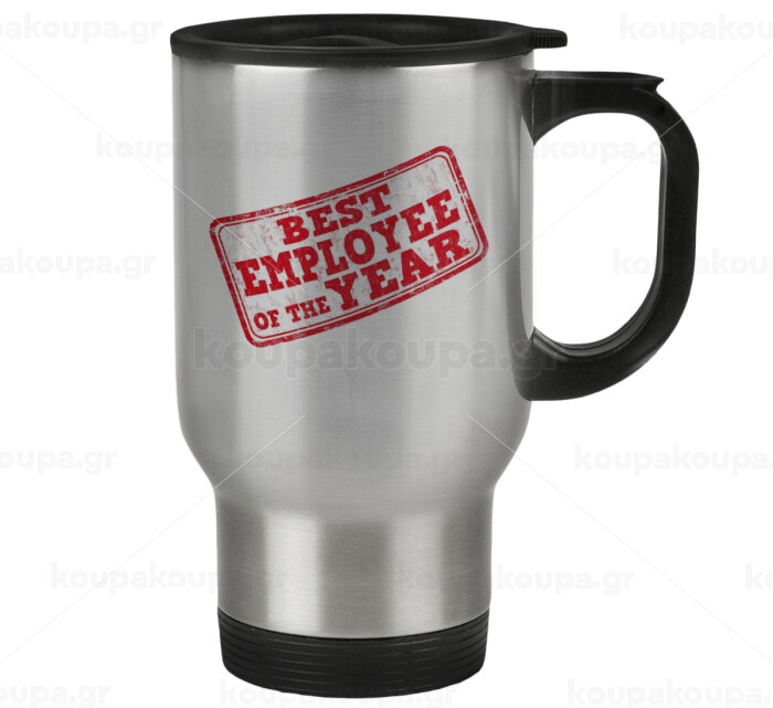 Best employee of the year, Stainless steel travel mug with lid, double wall 450ml