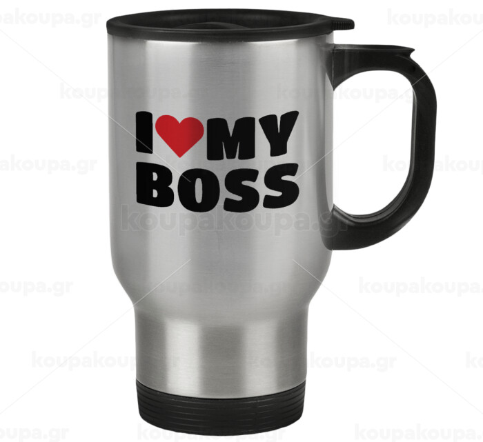I LOVE MY BOSS, Stainless steel travel mug with lid, double wall 450ml