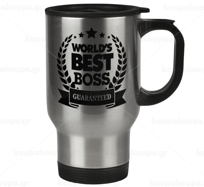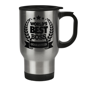 World's best boss stars, Stainless steel travel mug with lid, double wall 450ml