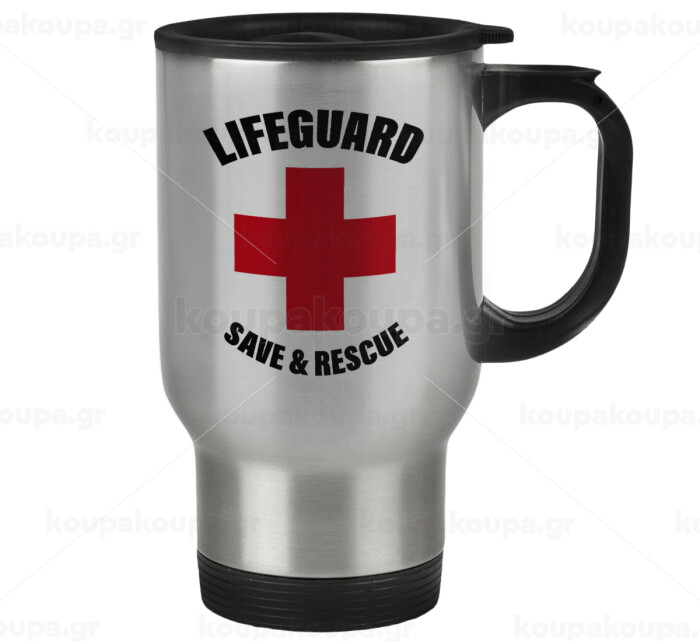 Lifeguard Save & Rescue, Stainless steel travel mug with lid, double wall 450ml