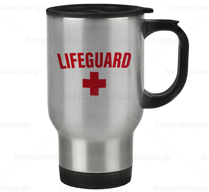 Lifeguard, Stainless steel travel mug with lid, double wall 450ml