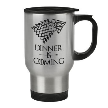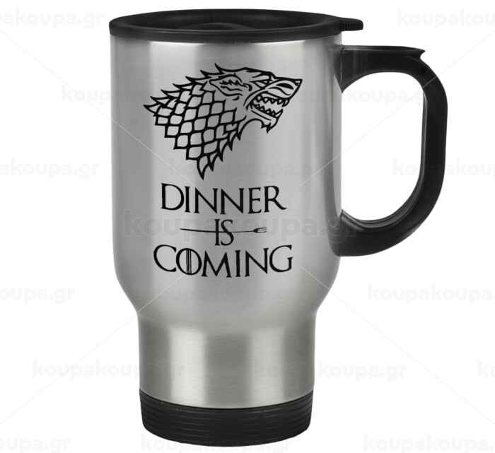 Dinner is coming (GOT), Stainless steel travel mug with lid, double wall 450ml