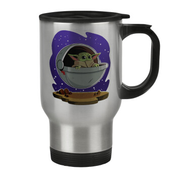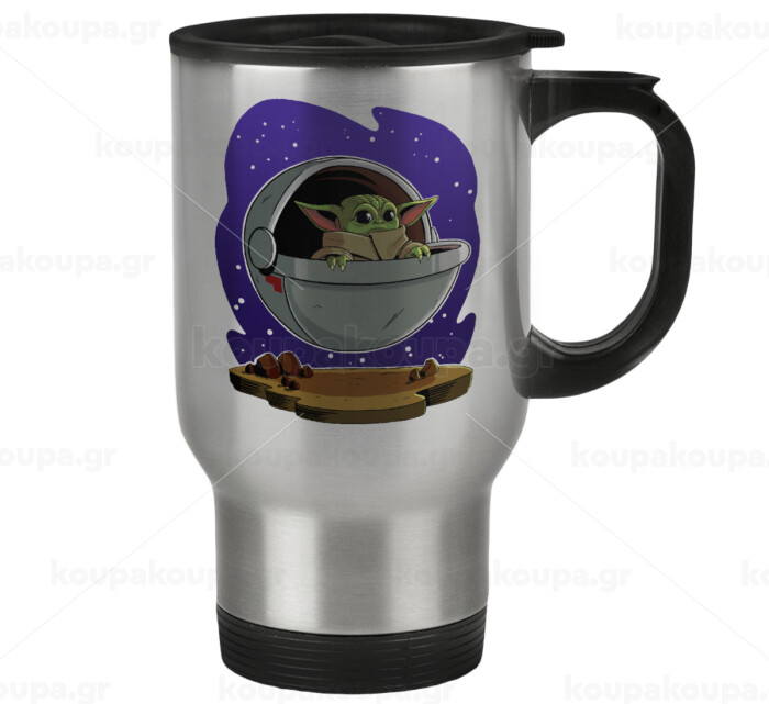 Baby Yoda mandalorian, Stainless steel travel mug with lid, double wall 450ml
