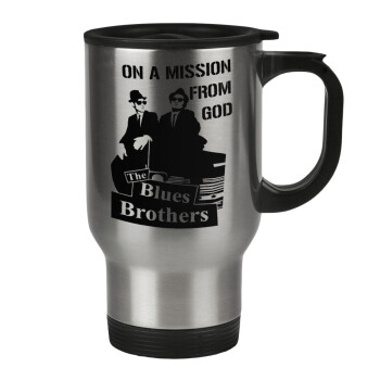 Blues brothers on a mission from God, Stainless steel travel mug with lid, double wall 450ml