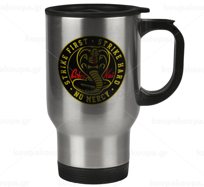 cobra kai strike first dojo, Stainless steel travel mug with lid, double wall 450ml