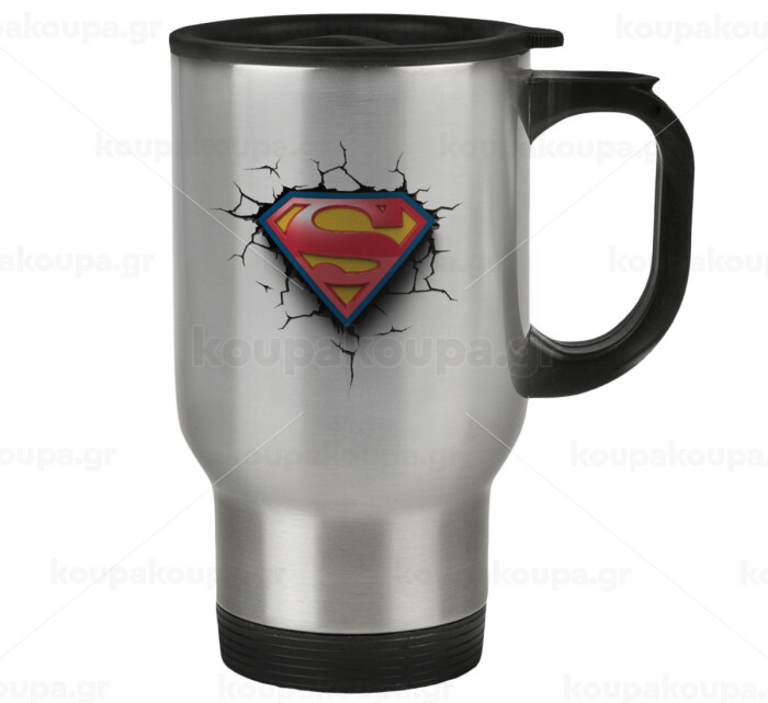 Superman cracked, Stainless steel travel mug with lid, double wall 450ml