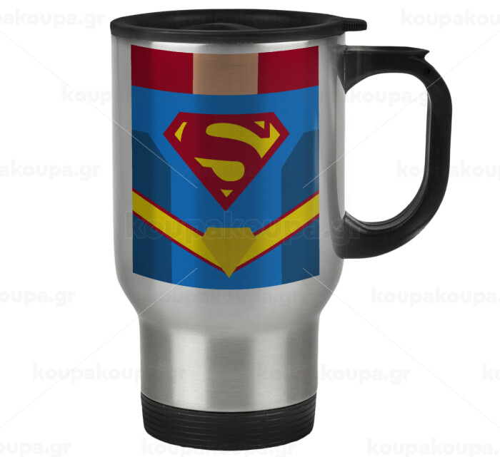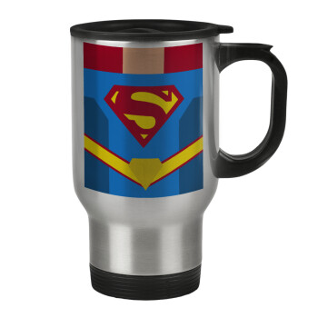 Superman flat, Stainless steel travel mug with lid, double wall 450ml