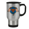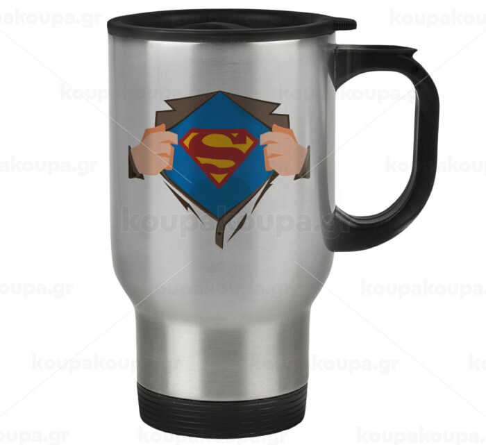 Superman hands, Stainless steel travel mug with lid, double wall 450ml