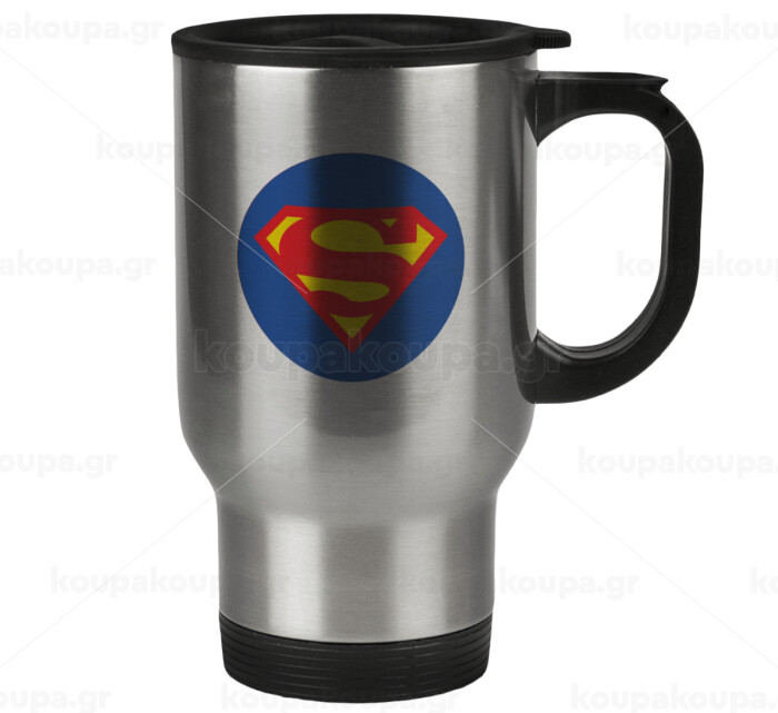 Superman, Stainless steel travel mug with lid, double wall 450ml