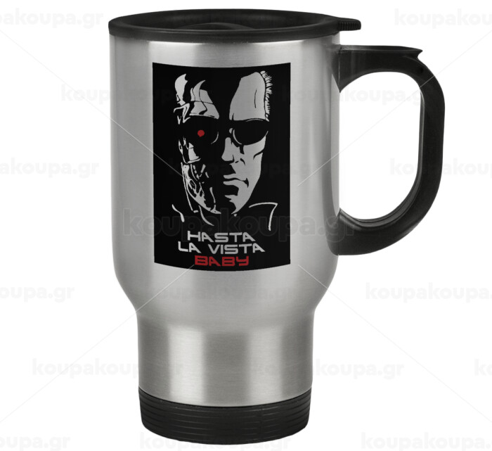 Terminator Hasta La Vista, Stainless steel travel mug with lid, double wall 450ml