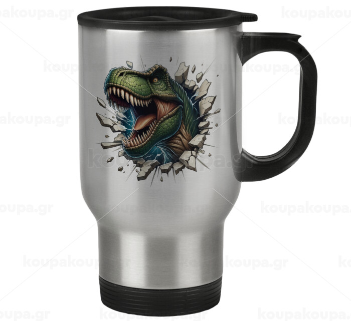 Dinosaur break wall, Stainless steel travel mug with lid, double wall 450ml