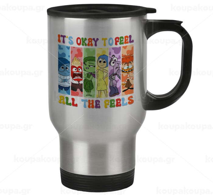 Inside Out It's Okay To Feel All The Feels , Stainless steel travel mug with lid, double wall 450ml