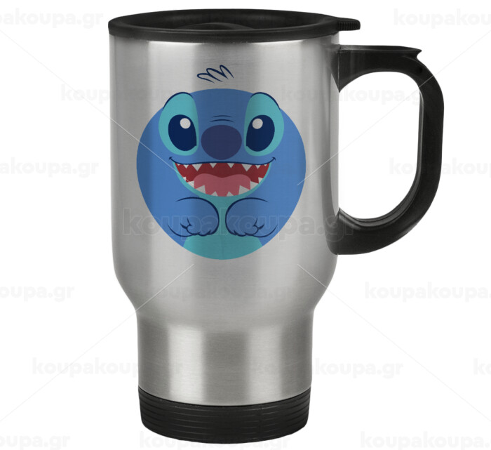 Lilo & Stitch blue, Stainless steel travel mug with lid, double wall 450ml
