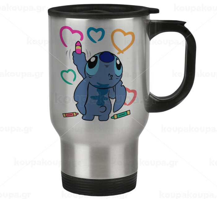 Lilo & Stitch painting, Stainless steel travel mug with lid, double wall 450ml