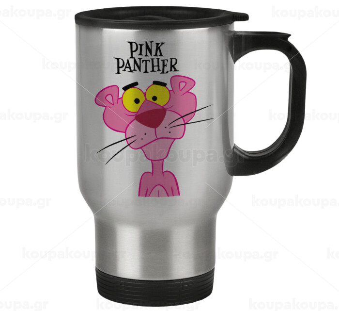 Pink Panther cartoon, Stainless steel travel mug with lid, double wall 450ml