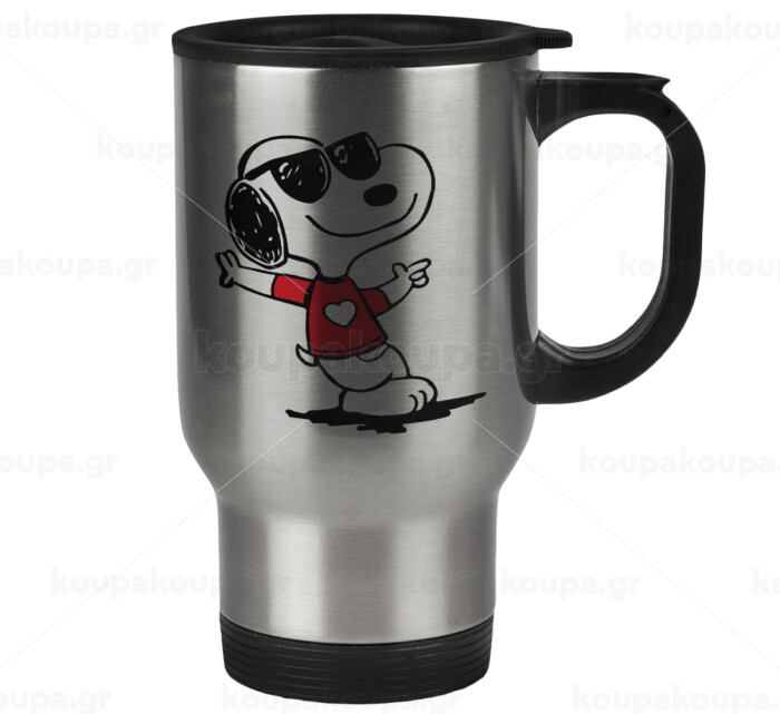 Snoopy καρδούλα, Stainless steel travel mug with lid, double wall 450ml