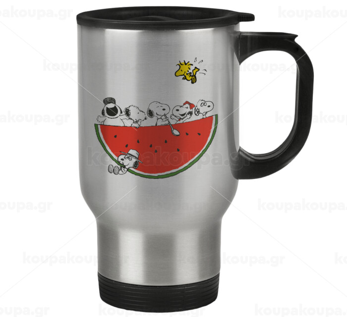 Snoopy summer, Stainless steel travel mug with lid, double wall 450ml