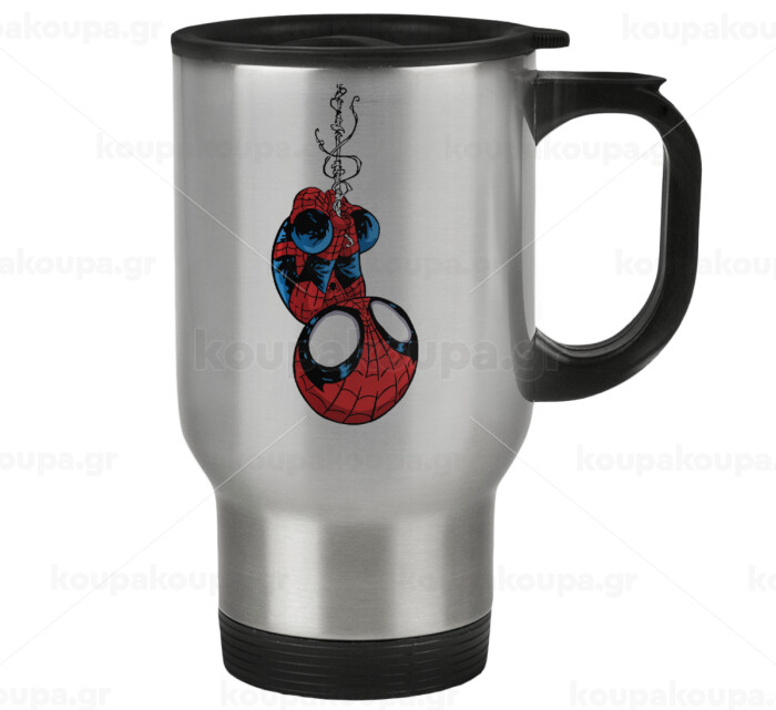 Spiderman upside down, Stainless steel travel mug with lid, double wall 450ml