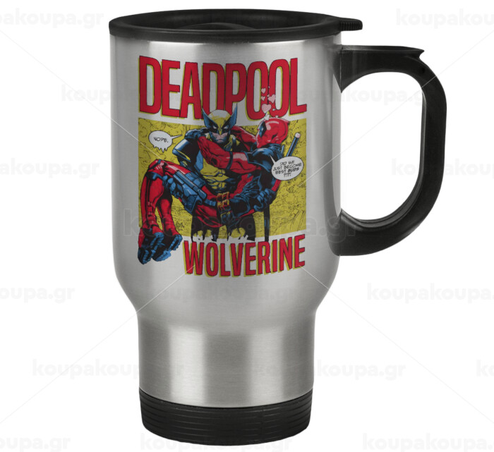 Superhero Deadpool Wolverine, Stainless steel travel mug with lid, double wall 450ml