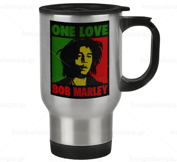 Bob marley, one love, Stainless steel travel mug with lid, double wall 450ml