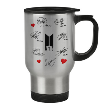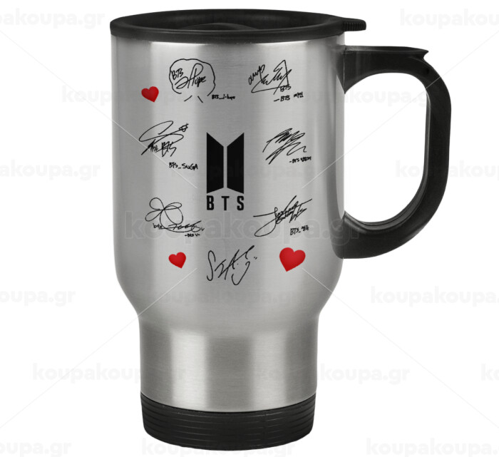 BTS signatures, Stainless steel travel mug with lid, double wall 450ml
