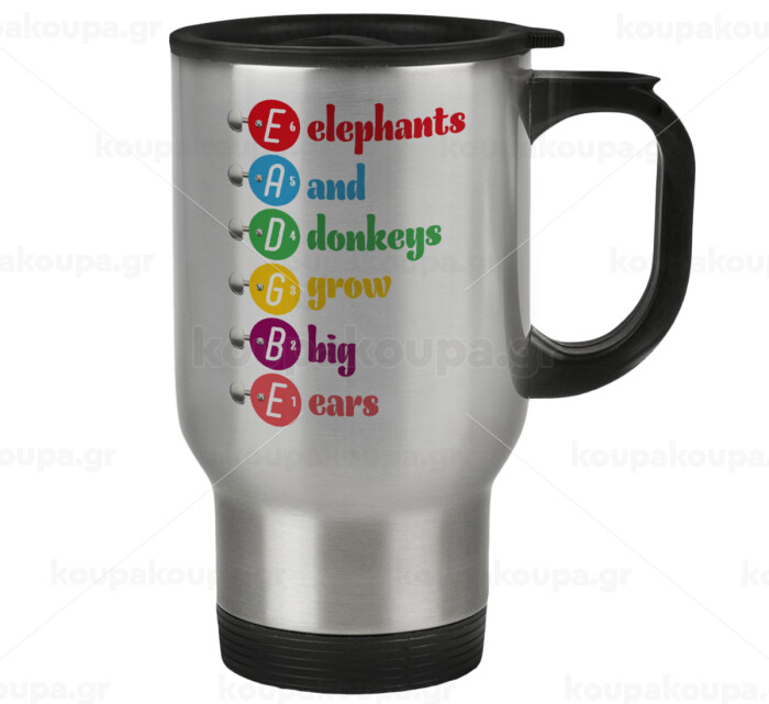 Elephants And Donkeys Grow Big Ears, Stainless steel travel mug with lid, double wall 450ml
