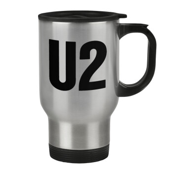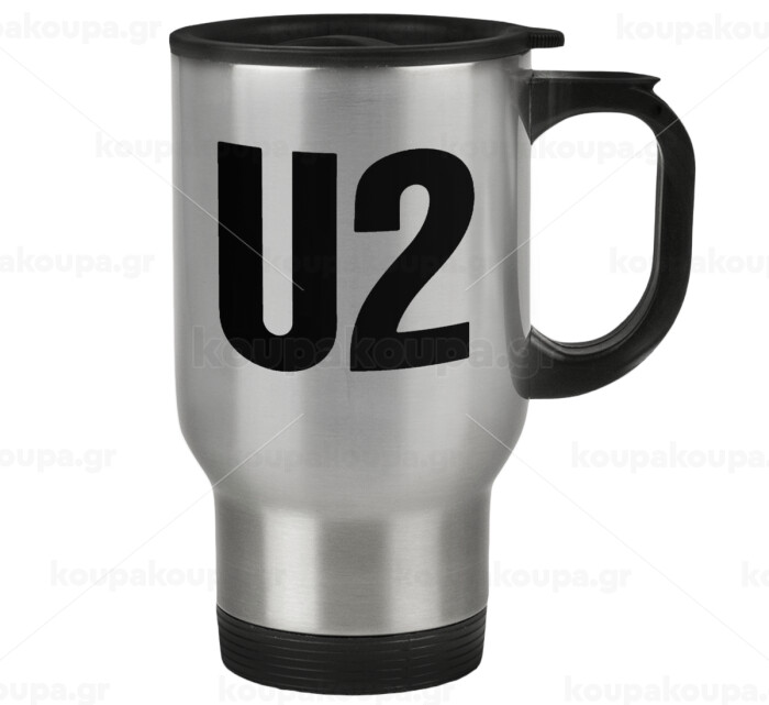 U2 , Stainless steel travel mug with lid, double wall 450ml