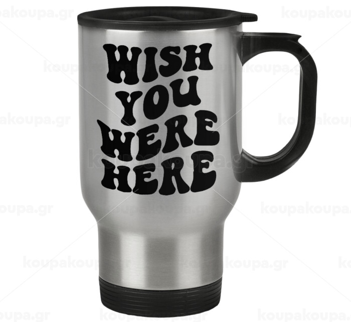 Wish you were here, Stainless steel travel mug with lid, double wall 450ml
