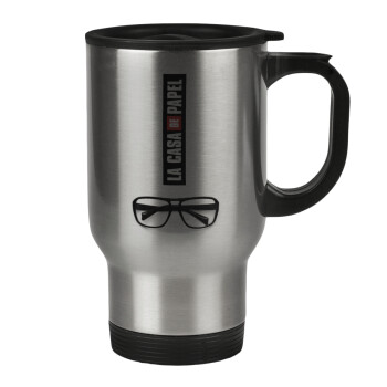 la professor, γυαλιά, Stainless steel travel mug with lid, double wall 450ml