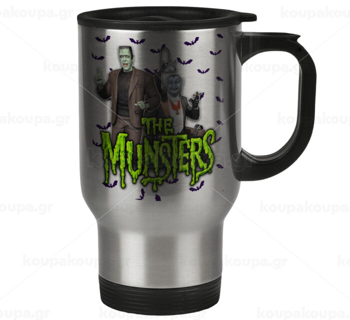 The munsters, Stainless steel travel mug with lid, double wall 450ml