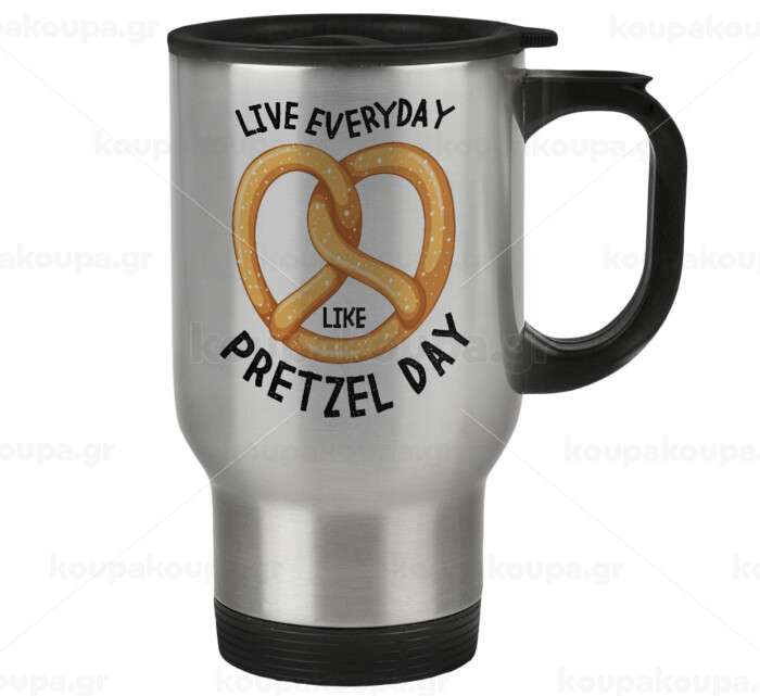 The office, Live every day like pretzel day, Stainless steel travel mug with lid, double wall 450ml