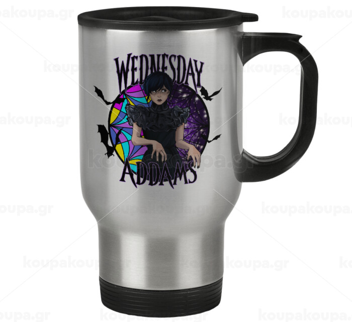 Wednesday Jenna Ortega, Stainless steel travel mug with lid, double wall 450ml