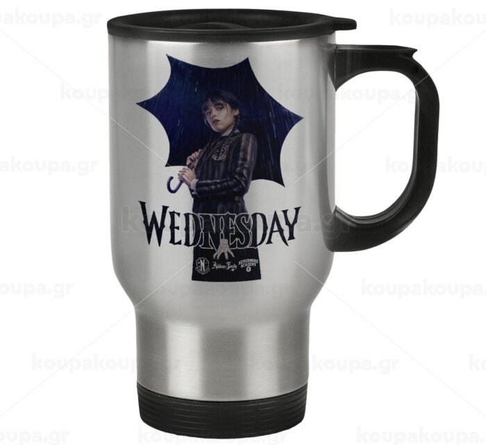 Wednesday rain, Stainless steel travel mug with lid, double wall 450ml