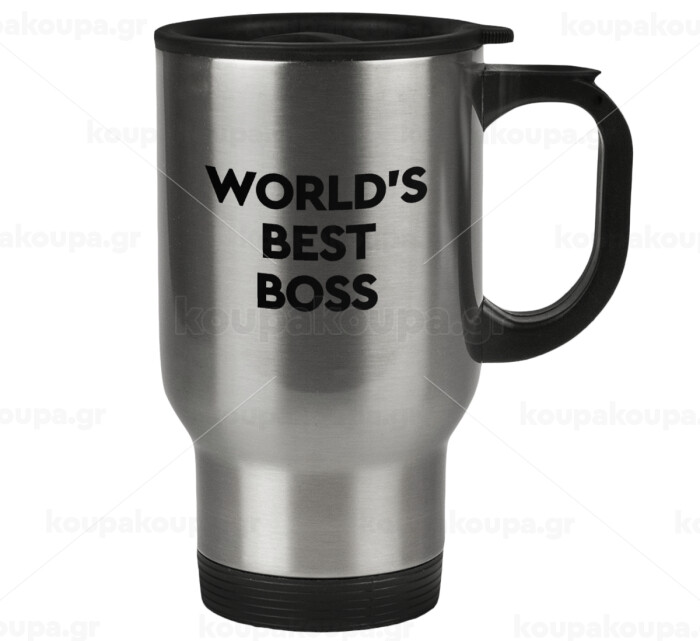 World's best boss, Stainless steel travel mug with lid, double wall 450ml