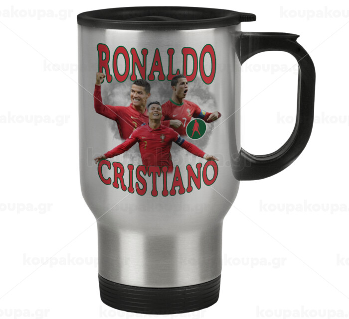 Cristiano Ronaldo, Stainless steel travel mug with lid, double wall 450ml