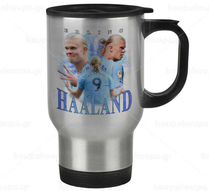 Erling Haaland, Stainless steel travel mug with lid, double wall 450ml
