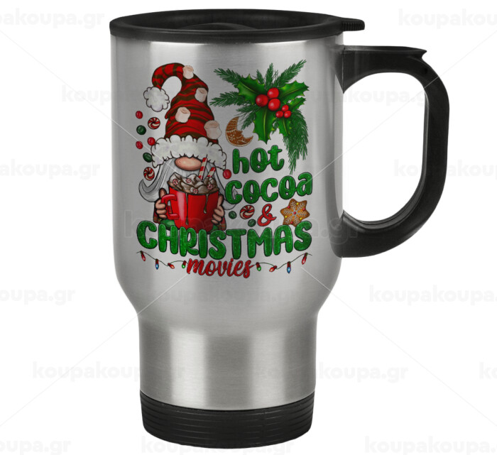 Hot cocoa and Christmas movies, Stainless steel travel mug with lid, double wall 450ml