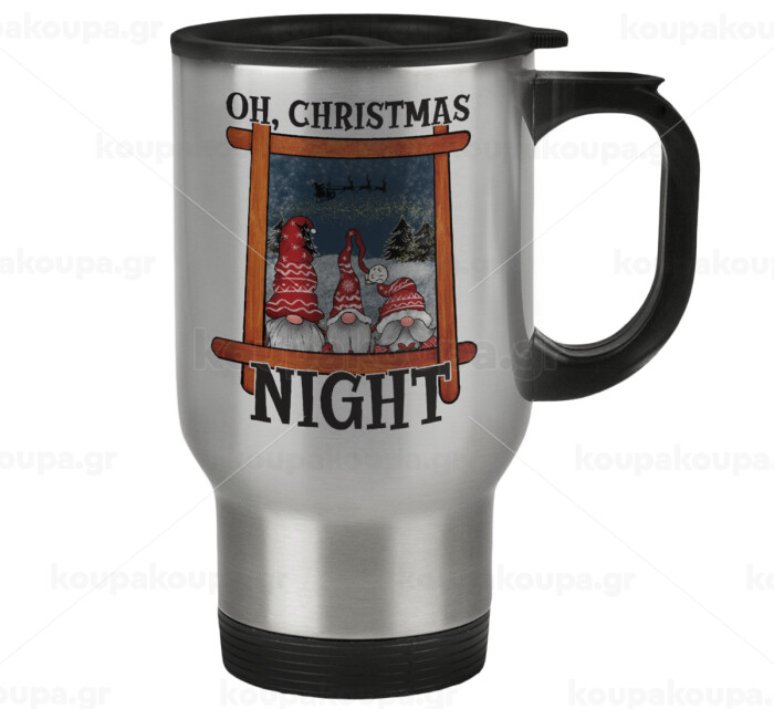 Oh Christmas Night, Stainless steel travel mug with lid, double wall 450ml
