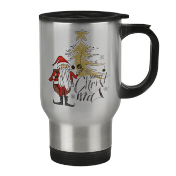 Santa Claus gold, Stainless steel travel mug with lid, double wall 450ml